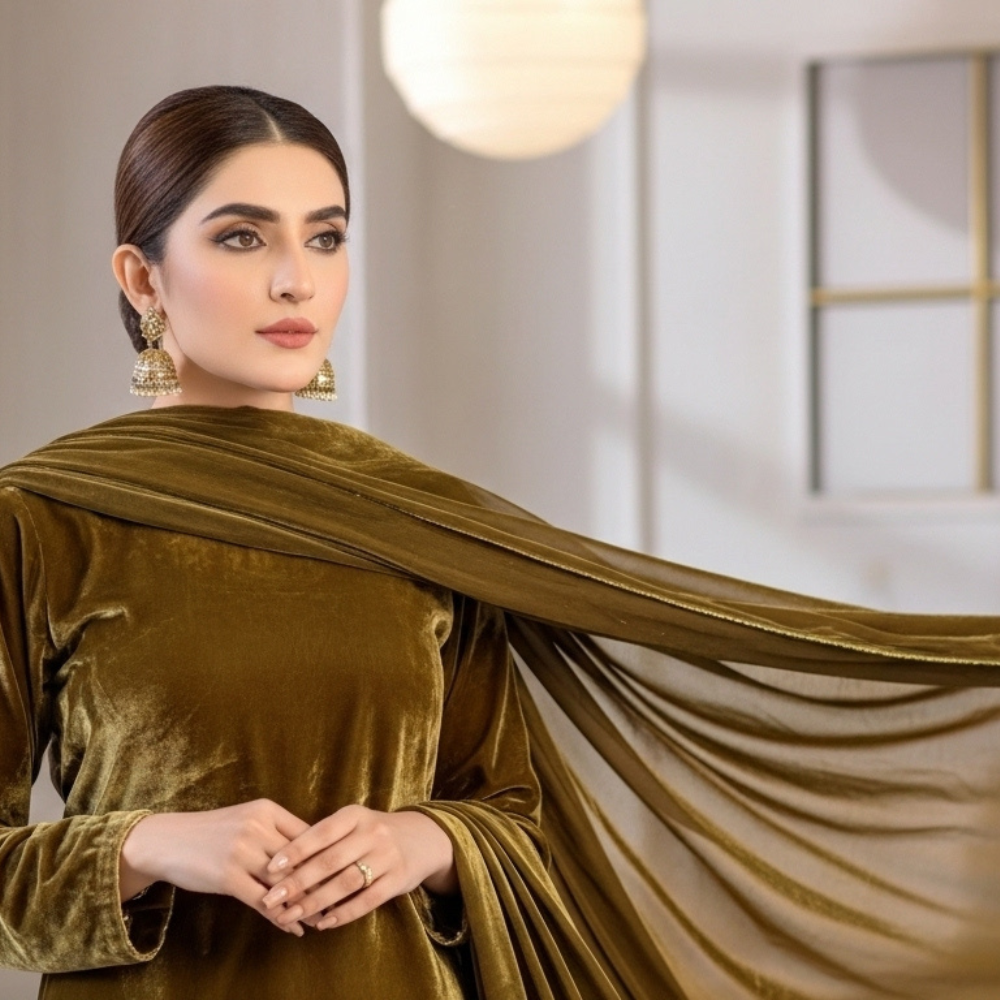 For traditional suits, Micro 9000 velvet is used to make beautiful kameez (tunics) and sharara sets. These outfits are often heavily embroidered, and the velvet serves as a rich backdrop for the handwork. They are a staple for winter festivities, as the fabric provides warmth without compromising on style. - Formal Dresses and Gowns: